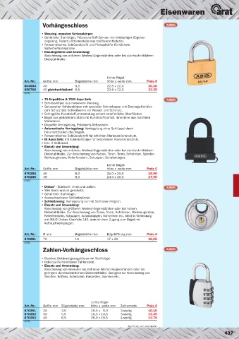 Art.-Nr.: Größe mm Bügelstärke mm höhe x -weite mm Zahlencode Preis €