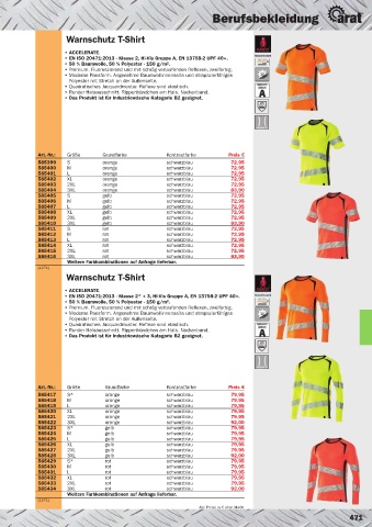 • EN ISO 20471:2013 - Klasse 2* + 3, Hi-Vis Gruppe A, EN 13758-2 UPF 40+.