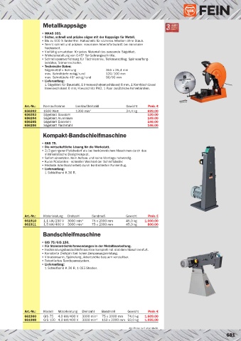 Art.-Nr.: Modell Motorleistung Drehzahl Bandmaß Gewicht Preis €