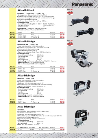 Art.-Nr.: Modell Akku Gewicht Preis €