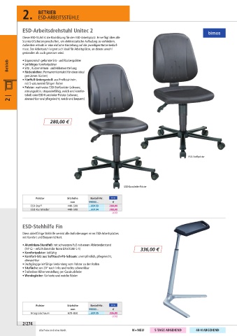 • Polster: wahlweise ESD-Stoffpolster (schwarz,