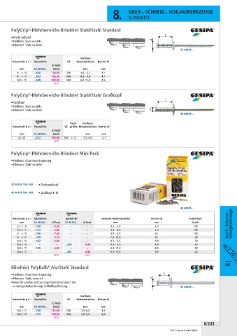 Nietschaft d x l Bestell-Nr. Bestell-Nr. nietbare Materialstärke Bohrer-Ø Packinhalt
