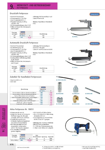 • Passende Fettkartusche 400 g Hinweis: Empfohlener Arbeitsdruck