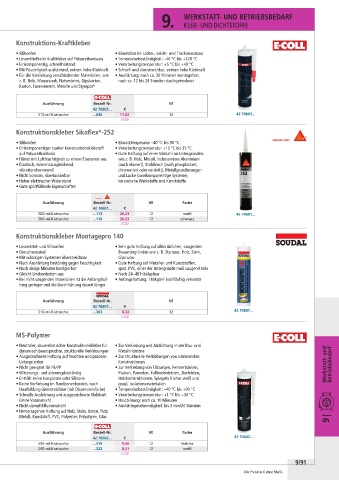 • Nicht geeignet für PE/PP • zur Verklebung von Türzargen, Fensterbänken, Betriebsbedarf