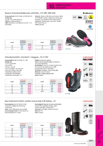 Zulassung/Norm: EN ISO 20345, S5 SRA Beständigkeit: Minerale, tierische und pflanzliche