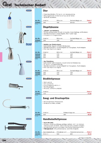 Art.-Nr.: Gewindeanschluss Füllvolumen cm³ Förderhöchstdruck bar Preis €